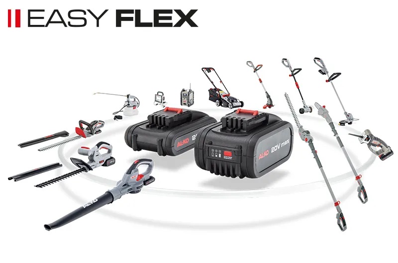 Rodina 18 V se rozrůstá a nabízí již více než tucet zařízení, která lze ovládat pomocí jedné baterie: sekačky na trávu, nůžky na živý plot, strunové sekačky na trávu, pily, prořezávače, foukače listí, postřikovače rostlin, čistič spár, světlo a mnoho dalšího. Akumulátorové nářadí, které má jedno společné: Díky lehké baterii 18 V (Energy Flex) je práce na zahradě snadná.